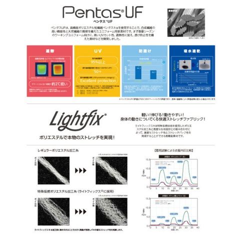 安心の高品質日本製素材で、遮熱、UVカット機能も備わっており、透け防止、吸水速乾性と、機能が多くございます。サイズはSSサイズ~6Lサイズまで、9サイズでの展開となりますので、幅広い体型の方にお選びいただけます。SSサイズとSサイズは、レディースシルエットとなっており、男女兼用のユニセックス仕様です。ストレッチ素材ですので、しゃがんだりの動作がスムーズに行えます。