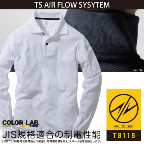 ESドライ鹿の子素材(導電繊維混入)で、JIS規格適合の制電性能なので、帯電電荷量を抑え、スパーク放電を防止します。見た目も、かっこよくシャープなシルエットとなっております。
