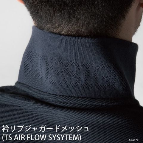 左袖部分には、マルチスリーブポケットが付いていますので、いつでもサッとペンの出しれができますので、作業の効率化につながります。衿部分は、リブジャガードメッシュ仕様(TS AIR FLOW SYSTEM)です。ボタンはTS DESIGNオリジナルロゴの入った4つア穴ボタンになっております。