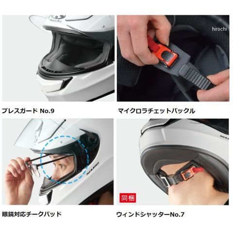 ワイドタイプの「100%MAX VISIONピンロックシート(別売)」を装着することで、シールドの曇りを防止。ブレスガードは、シールド裏面への吹き出し面積を拡大した大型の「ブレスガードNo.9」を採用。シールドの曇り除去に貢献します。