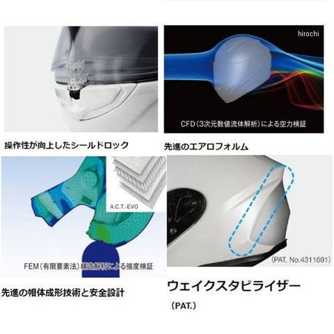 耐貫通性と衝撃吸収性を兼ね備えた高強度複合素材帽体(A.C.T.-EVO)とFEM(有限要素法)構造解析を導入し各部の強度を最適化。