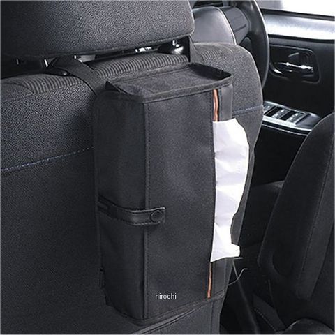 ヘッドレスト、シートバック、バイザー、アームレスト等いろんな場所・パターンで取付けできるティシューケース。