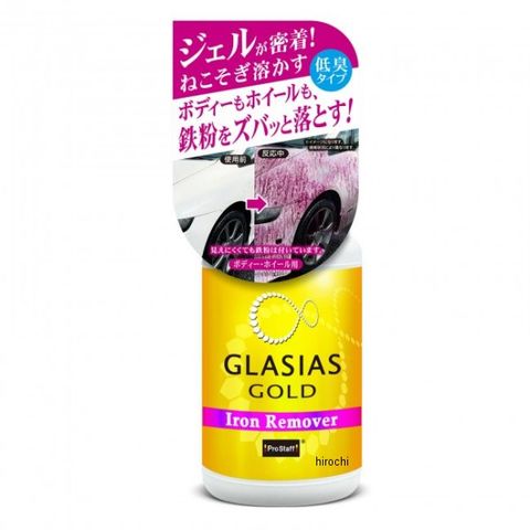 ボディーやホイールに付着した鉄粉やブレーキダストを化学反応で落とす、鉄粉除去クリーナーがグラシアスゴールドシリーズから新登場。垂れにくく定着性の高い「ジェルタイプ」で、有効成分がしっかりと密着。ボディーやホイールに付着したガンコな鉄粉をしっかりと包み込み、素早く(赤紫色に)化学反応させ、ねこそぎ溶かし落とします。また、鉄粉取りクリーナー特有の臭いがジェルで飛散しにくく、快適な作業性を実現しました。ボディーコーティング前の下地処理に特にオススメで、塗装表面がつるつるになりコーティング効果を最大限に発揮させます。車全体をリフレッシュできる鉄粉取りのNEWアイテムです。