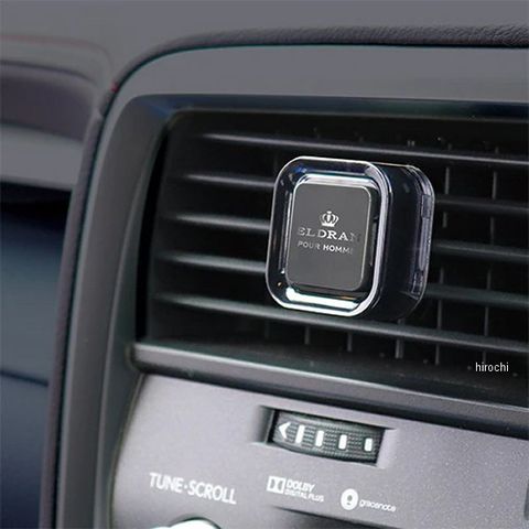 スタイリッシュなスクエア型と洗練された優美な香りの共演。透明感と深みのある色合いに王冠のロゴマークがきらりと光る、エアコンルーバータイプ。厳選された極上の香りが車内を包み込む。