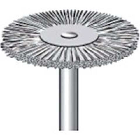 ・毛材:ステンレス・外径(mm):23・幅(mm):1.5・軸径(mm):3・全長(mm):43・線径(mm):0.1・最高使用回転数(rpm):15000・形状:ホイール