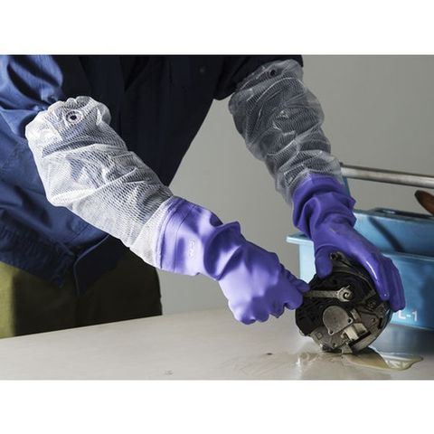 ・手袋部は塩化ビニール製のため、天然ゴム製の手袋に比べて油や洗剤に強い手袋です。・全長が65cmあり、肩口までの水ぬれ、汚れを防ぎます。・糸入りメッシュ付きのフードで、破れにくく丈夫です。・裏植毛付きのため、肌触りがよく着脱がスムーズです。