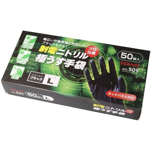 509L (株)東和コーポレーション トワロン 使い捨て手袋 制電ニトリル極うす手袋 L (50枚入)