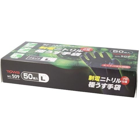 509LL (株)東和コーポレーション トワロン 使い捨て手袋 制電ニトリル極うす手袋 LL (50枚入)