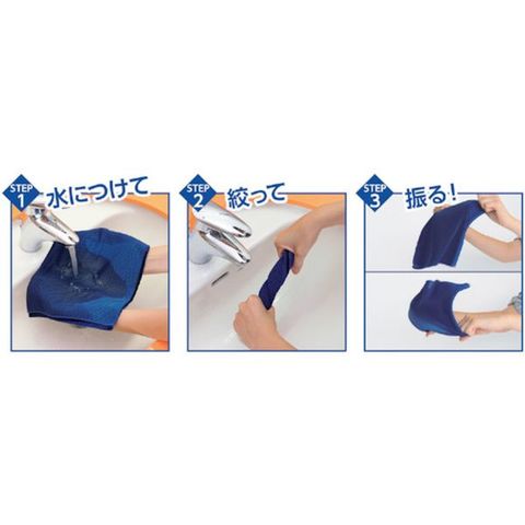 ・瞬時に超冷感、水につけて絞って振るだけでひんやりクールな冷感タオルです。