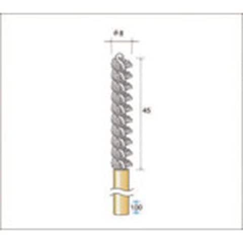 ・線径(mm):0.55・毛材:GC砥粒入りナイロン・外径(mm):8・ブラシ部長さ(mm):45・軸径(mm):6・適合内径(mm):8・全長(mm):100・最高使用回転数(rpm):3000・粒度(#):120