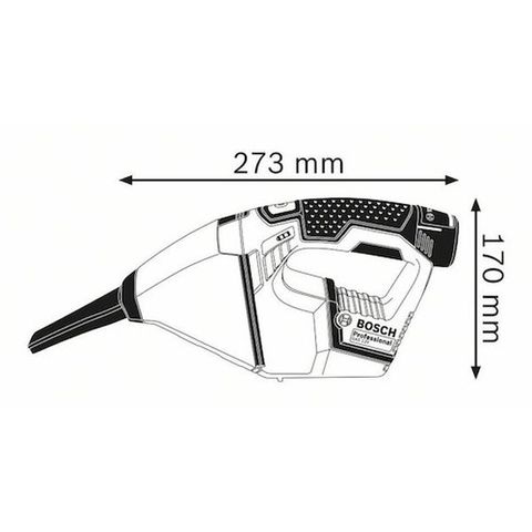 ・最大風量([[M3]]/min):0.9・幅(mm):273・奥行(mm):170・高さ(mm):77・電圧(V):DC10.8(ボッシュプロ用充電式専用バッテリー)・種類:コードレスクリーナー