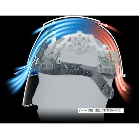 エアライト搭載遮熱ヘルメット 二層構造高通気タイプ 溝付 ABS製 透明ひさしブルー 帽体ホワイト