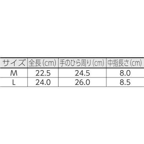 ・色:グリーン・サイズ:L・全長(cm):24.0・手のひら周り(cm):26.0・中指長さ(cm):8.0・厚さ(mm):1.2~1.4・袖口タイプ:袖なし
