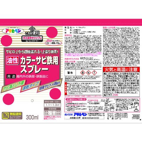 ・サビを落とさずにサビの上から直接塗れます。・サビ止めと上塗りが同時にできる速乾タイプのスプレー塗料です。・シリコンアクリル樹脂が成分なので、耐候性に優れています。
