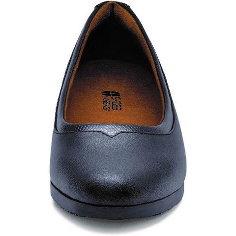 ・上品なデザインのバレリーナシューズです。・水や油などで滑りやすい床面でも滑りにくい靴底を使用しています。・インソールは取り外し可能です。・クッション性のあるインソールを採用しており快適な履き心地です。・つま先部分にはつまづき転倒を防ぐトリップガード[TM]技術が使用され滑りやすい環境下での危険を減らします。・ヒール高さ12.7mmです。