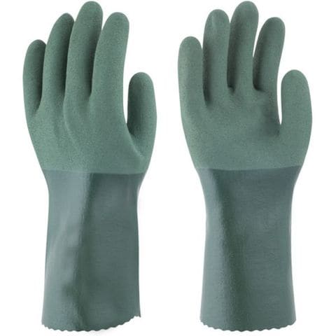 ・独自のすべり止め加工により、オイルグリップに優れ、油が付着した物の扱いに適しています。・天然ゴムやビニール製手袋に比べ、耐油性・耐摩耗性・耐突刺性などに優れています。・シームレス編手の使用により柔らかく、使用感に優れています。・袖口をカバーするロングタイプです。