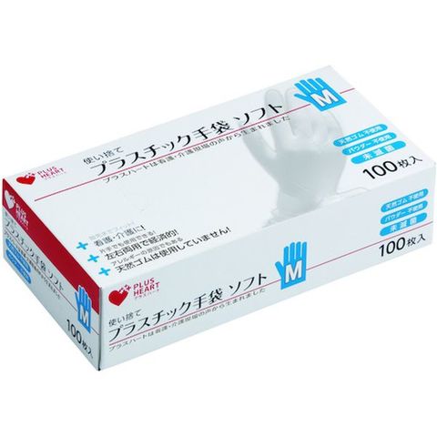 プラスハート プラスチック手袋ソフト パウダーフリー M 透明 100枚入