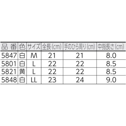 ・色:黄・サイズ:L・全長(cm):22.0・手のひら周り(cm):22.0・中指長さ(cm):8.5・厚さ(mm):0.7~0.8・袖口タイプ:袖なし