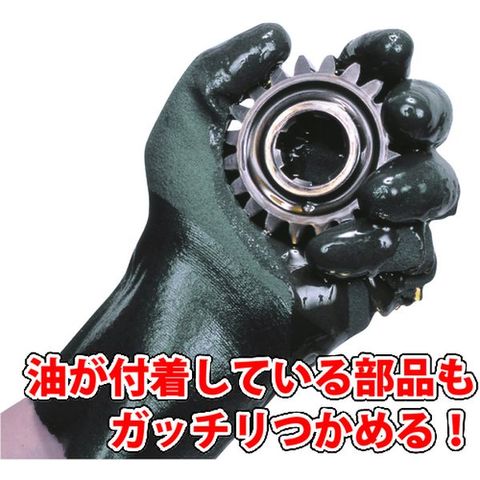 ・東和独自の表面を凹凸加工したすべり止め(マイクロフィニッシュ[[R上]])でドライの状態はもちろんのこと、油が付着した物の取り扱いでも高いグリップ効果を発揮します。・耐久性を重視した独自の湾曲成形で手の動きを妨げず、疲れにくい手袋です。