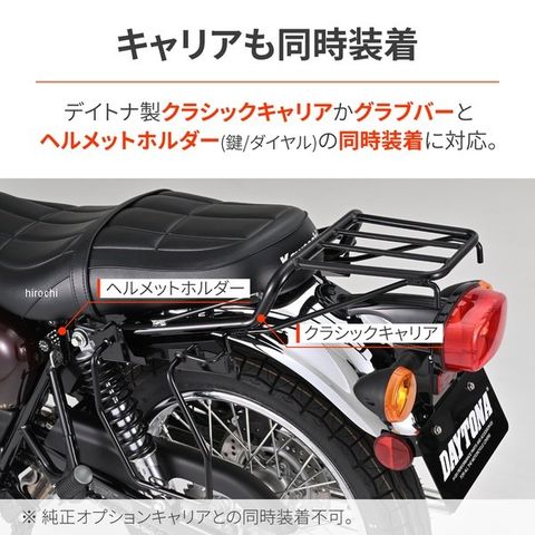 サドルバッグのベルト掛けループを一体化したサドルバッグサポート。別途サドルバッグハンガーをご用意いただく必要はありません。ベルト掛けループはユーティリティーネットを掛けることもできるので便利です。当社サドルバッグはもちろん、ベルトの左右ピッチ190mm前後のバッグに対応します。バッグサポート部は縦方向に十分な長さを取ることで、サドルバッグがリアサス、リアアクスルに接触しにくい形状です。 クラシックキャリア、グラブバーとの同時装着が可能。