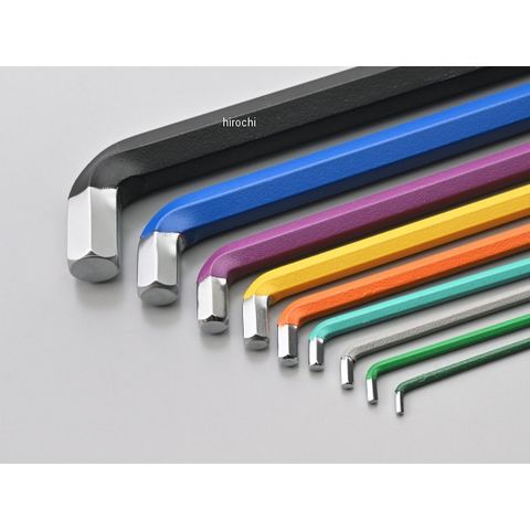 レインボーでサイズが分かりやすい。片側108°ショートで高さが出ないため、奥まった箇所の使用時に便利。ボールポイント加工側は、傾けた状態でもスムーズに作業できます。