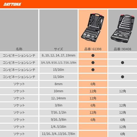 61398 デイトナ バイク用 工具 入門 インチ&ミリ工具セット 52ピース