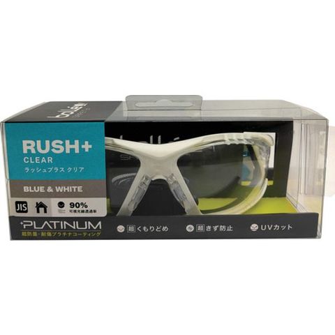 ・大人気曇らない・痛くない・かっこいいでおなじみの保護メガネRUSH+にストラップと白いガスケットとを標準装備したセット