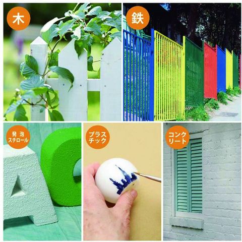 ・屋内外の木部、鉄部、コンクリート、新生瓦、発泡スチロールなどのプラスチック面。(ポリエチレン、ポリプロピレンなどは除く)