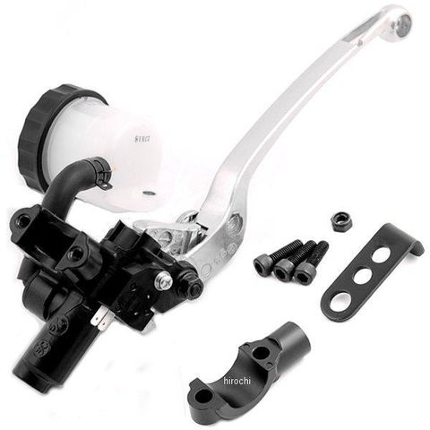 ブレーキスイッチ(平端子2極タイプ)、アルミタンクステー×1、ミラーホルダー(M10×P1.25正ネジ)×1付属。リザーバータンクホース長=70mm。