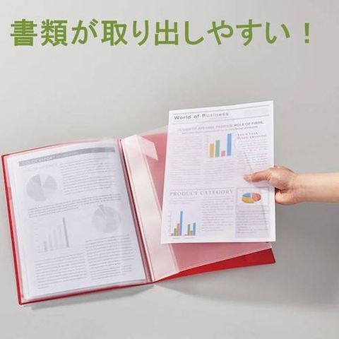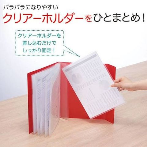 ・書類が見やすく、探しやすいです。・クリアーホルダーが冊子状にまとまるため、本をめくるように書類が探せます。・書類が取り出しやすいです。・クリアーホルダーを収納した状態で書類だけの出し入れができます。
