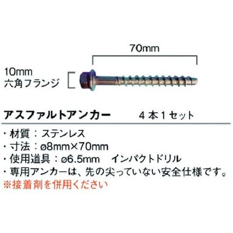 ・寸法Φ8mmx70mm、頭部10mm六角フランジです。・専用アンカーは、先の尖っていない安全仕様です。・接着剤を併用してください。