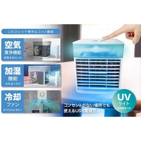 ・空気清浄、加湿、冷却が1つになった充電式の卓上ファンになります。・風速は3段階調節でUVライト除菌機能付きです。