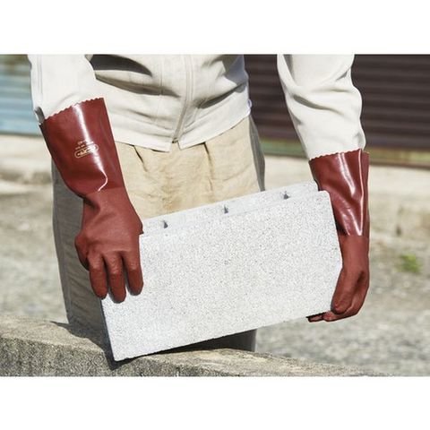 ・塩化ビニールをコーティングしているため油に強く、耐摩耗性にも優れています。・ハードな作業に威力を発揮する丈夫なタイプです。・全長34cmの袖口ロングタイプです。