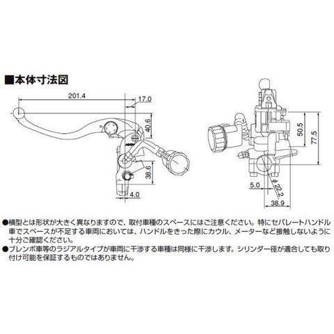 ・バンジョーボルトの取付位置が下側のため、クラッチホースの交換が必要になる場合がございます。装着前に必ずご確認ください。