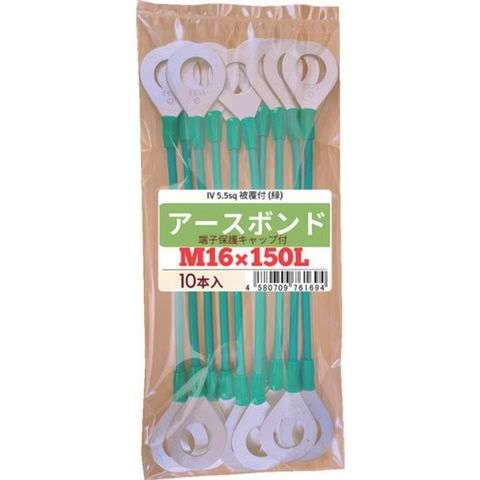 EBCR5.516150GR 被覆付アースボンド R5.5 M16×150L 端子保護キャップ付(緑) 10本入り