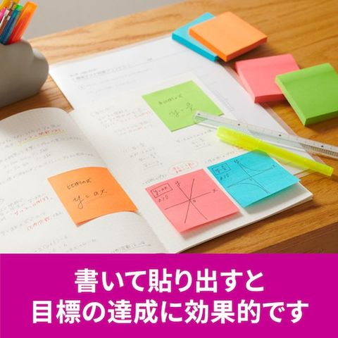 ・カラフルな4色のセットなので、色で識別したり、書いた部分を目立たせたりすることができます。・粘着力が2倍(当社通常粘着製品比)なので、つきにくい場所にもしっかりと貼れます。・紙製のふせんなので、筆記具を選ばずに使用できます。