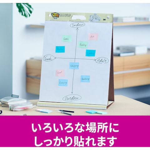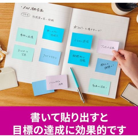 ・カラフルな4色のセットなので、色で識別したり、書いた部分を目立たせたりすることができます。・粘着力が2倍(当社通常粘着製品比)なので、つきにくい場所にもしっかりと貼れます。・紙製のふせんなので、筆記具を選ばずに使用できます。