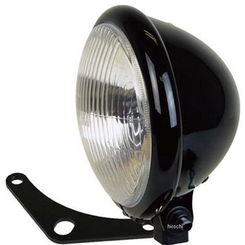 艶のあるグロスブラックのヘッドライト。車種専用のステー付き。H4バルブ、6055W、ボトムマウント。配線色 青:ハイビーム 白:ロービーム 緑:アース