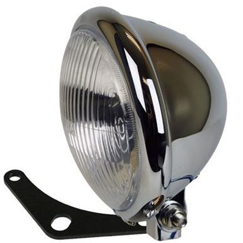 クロームのヘッドライト。車種専用のステー付き。H4バルブ、6055W、ボトムマウント。配線色 青:ハイビーム 白:ロービーム 緑:アース