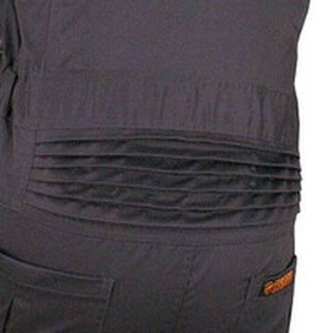 ・動きやすさと着心地を重視したつなぎ服です。・背中の伸縮機能や、足を広げやすい特殊カッティングなど着やすさにこだわりました。・肩部分にはマチ(アクションプリーツ)をとり、腕を伸ばして作業するときも背中が突っ張らないようにしました。・立ち座りの動作を妨げないよう、腰にはアコーディオン状のゴム付けて体を屈めたときの背中の突っ張り感を緩和します。・股の部分は特殊カッティングを施すことにより、足を広げる動作もラクラクです。
