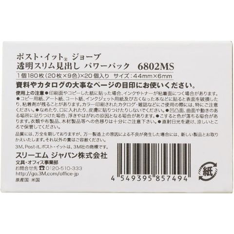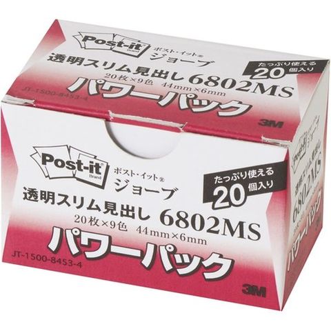 6802MS 149-2775 スリーエム 3M ポスト・イット ジョーブ パワーパック透明スリム見出し 44X6mm