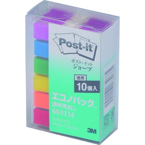 6831M ポスト・イット ジョーブ透明見出し エコノパック 44X10mm 120枚X10パッド 6色混色