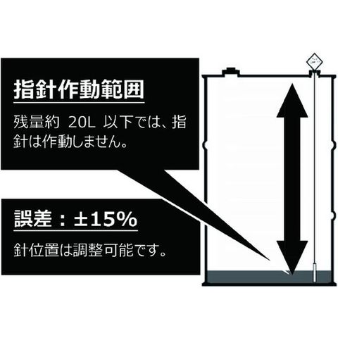・表示が大きく見やすく、ドラム缶内の液量が一目でわかります。・簡単取付で、200Lドラム缶の小栓(G3/4)に取り付けるだけ。