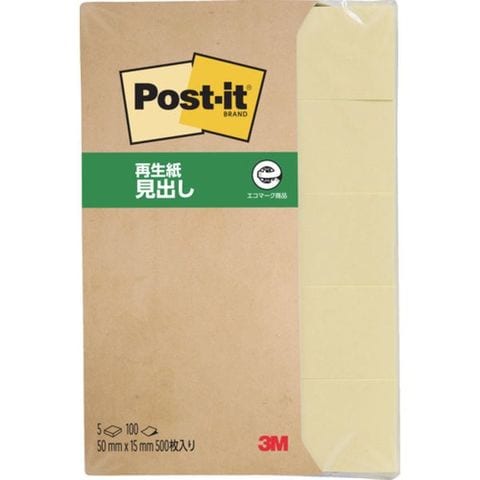 ・オフィスの定番、ポスト・イット[[R上]] 通常粘着製品です。・くり返し貼ったりはがしたりでき、相手をいためません。・見出しにぴったりのサイズです。・古紙100%の再生紙を使用し、環境保全を考え、資源をムダなく利用しています。
