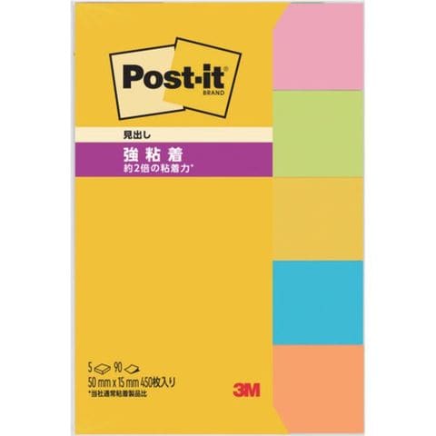 ・強粘着タイプのポストイット[[R上]] 製品です。・約2倍の粘着力(3M通常粘着比)で、パソコンや電話、キャビネットなどの樹脂面や垂直面など、つきにくかった場所にもしっかり貼れてはがれにくい製品です。・大切なことや伝言を書いて仕事もスムーズです。