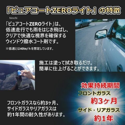 7011 撥水道場 窓ガラス撥水コーティング剤 ピュアコートZEROライト 40ml フロントガラス約10枚分