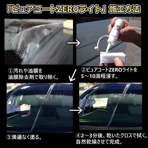 7013 撥水道場 窓ガラス撥水コーティング剤 ピュアコートZEROライトパッド付 40ml フロントガラス約10枚分