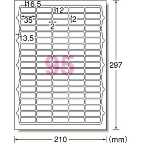 ・シートサイズ:A4・ラベルサイズ(mm)縦:12・ラベルサイズ(mm)横:35・色:白・面付:95面・1パック内:665片