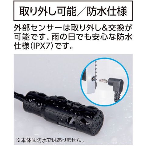・外部センサー付で室内・室外の温度・湿度が測定できます。