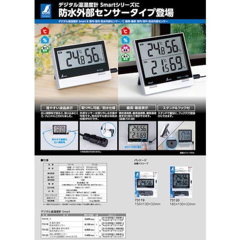 シンワ測定(株) シンワ デジタル温湿度計 Smart B 室内・室外 防水外部センサー